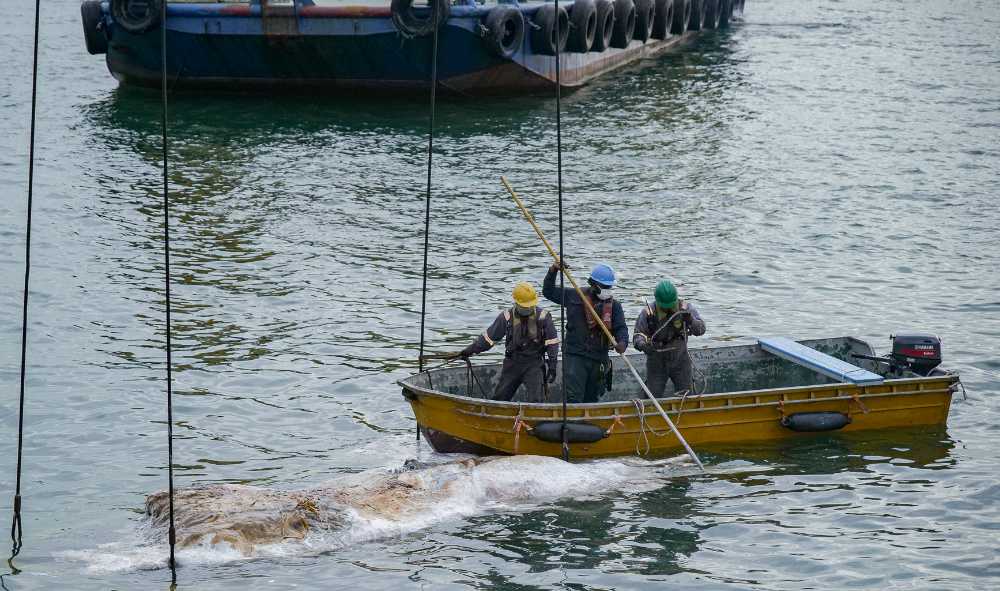 A 6.3m long baleen whale carcass was found in the waters off Tanjong Pagar on 6 Sep 2025. | IMAGE: FACEBOOK/@LEE KONG CHIAN NATURAL HISTORY MUSEUM