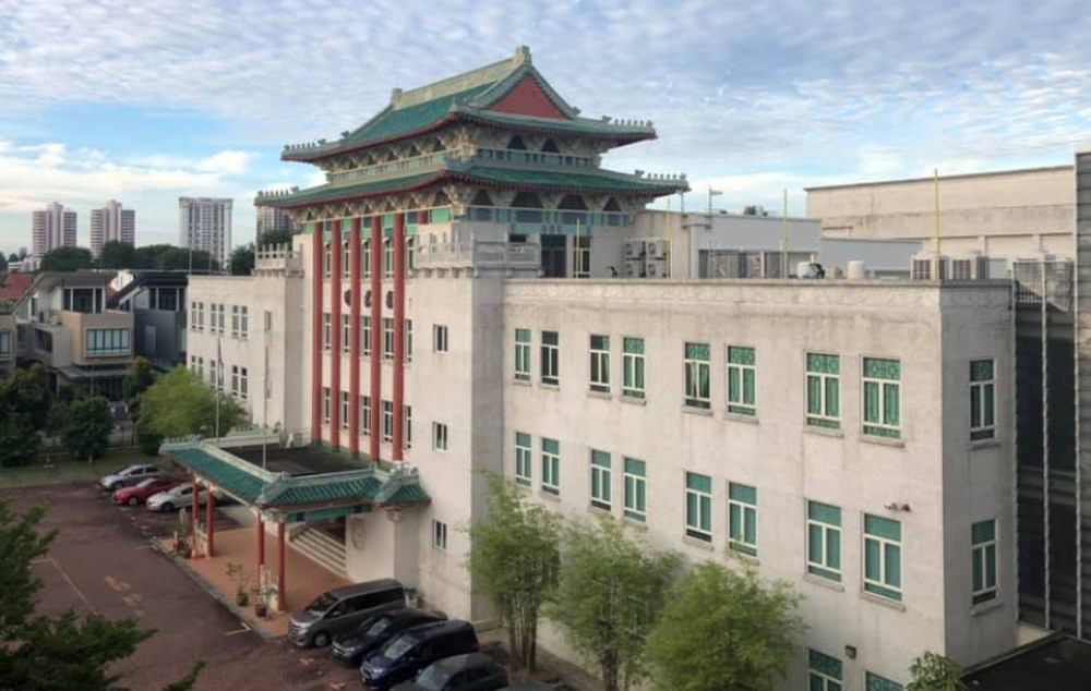Designed by alumnus Ho Beng Hong, the administration building reflects a blend of traditional Chinese elements with modern architecture. Its design features include a prominent double-tier Chinese roof, a façade embellished with cloud patterns and bat motifs, and abstract figures of mythical creatures known as 仙人走兽 (xian ren zou shou) decorate the roof eaves.