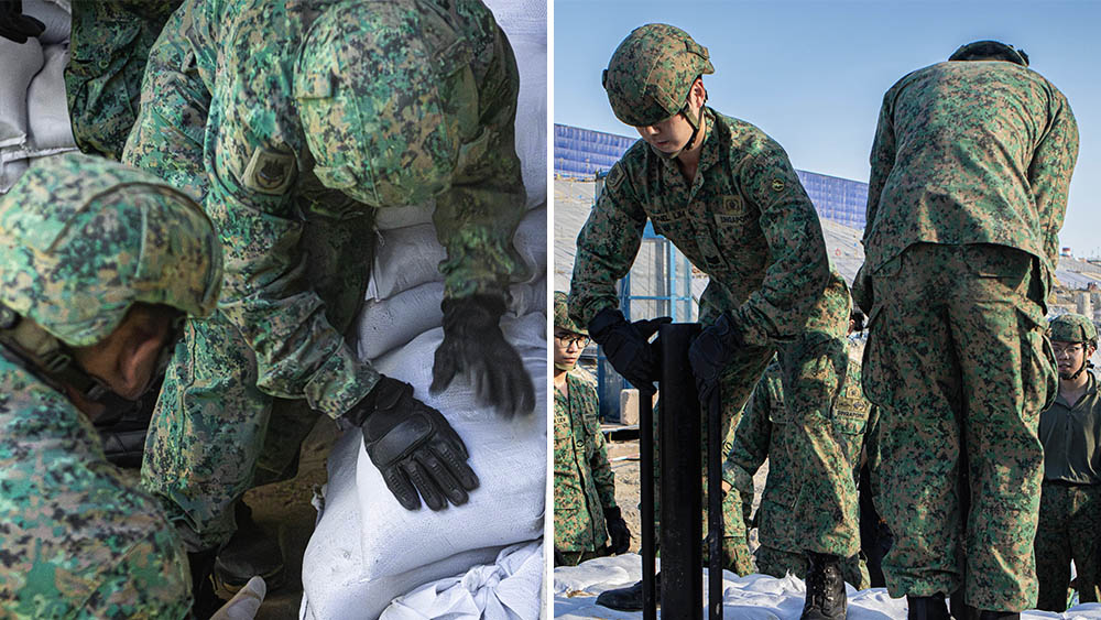 Personnel from the Singapore Army preparing protective works | IMAGES: MINDEF